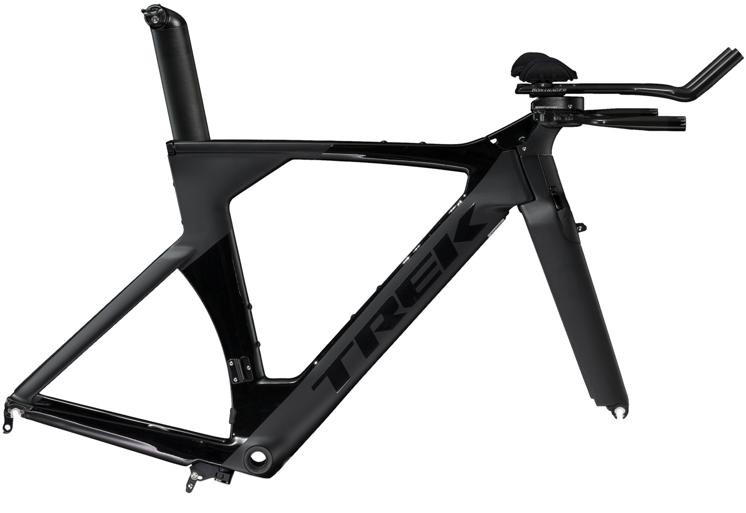 Lightweight 500 Series OCLV Carbon frame, drag-reducing Kammtail Virtual Foil (KVF) tube shaping, Speed Concept full foil carbon fork, integrated stem and Bontrager Speed Limit integrated brake set. Built for BB90 bottom bracket. Includes brakes, carbon aero bar, seat post, integrated direct mount stem and headset.