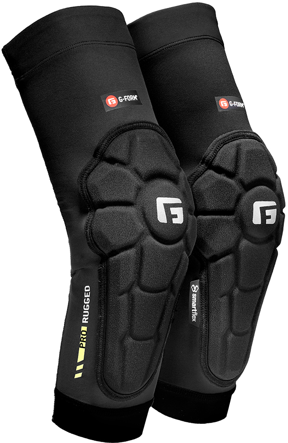 Pro-Rugged MTB Elbow Pads deliver more, because you demand it. So bring on more downhill trails with sharp branches and rocks. Pro-Rugged MTB Elbow Pads are made with the same breathable, lightweight, ultra-conforming G-Form technology that hardens on impact. But now with much, much more. Designed for mountain bike enthusiasts and more aggressive riders on long climbs and fast descents. Three protective layers: Layer 1: DuraTx adds durability to pads and resists tearing or catching. Layer 2: Body-mapped, impact-absorbing SmartFlex pads. Layer 3: Soft inner foam keeps pads secure and comfortable. Key Features - Strap across forearm keeps pads in place - New high performance, extra-wide top gripper offers optimum level of pad security and a splash of colour. - Ventilated mesh back keeps the wearer cool and dry. - Ultra-comfortable double-knit compression fabric for extra protection. - Seam-reinforced binding to improve durability. - CE-1621-1 certification. - Machine washable. Great For - Enduro, Moto, All Mountain, Trail.